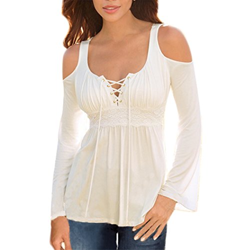 - Characteristics: Off-shoulder, spaghetti straps are adjustable in the front; the lace under bust looks sexy and charming. The top is stretchy. Most of reviewers say it is very soft, comfortable and flattering